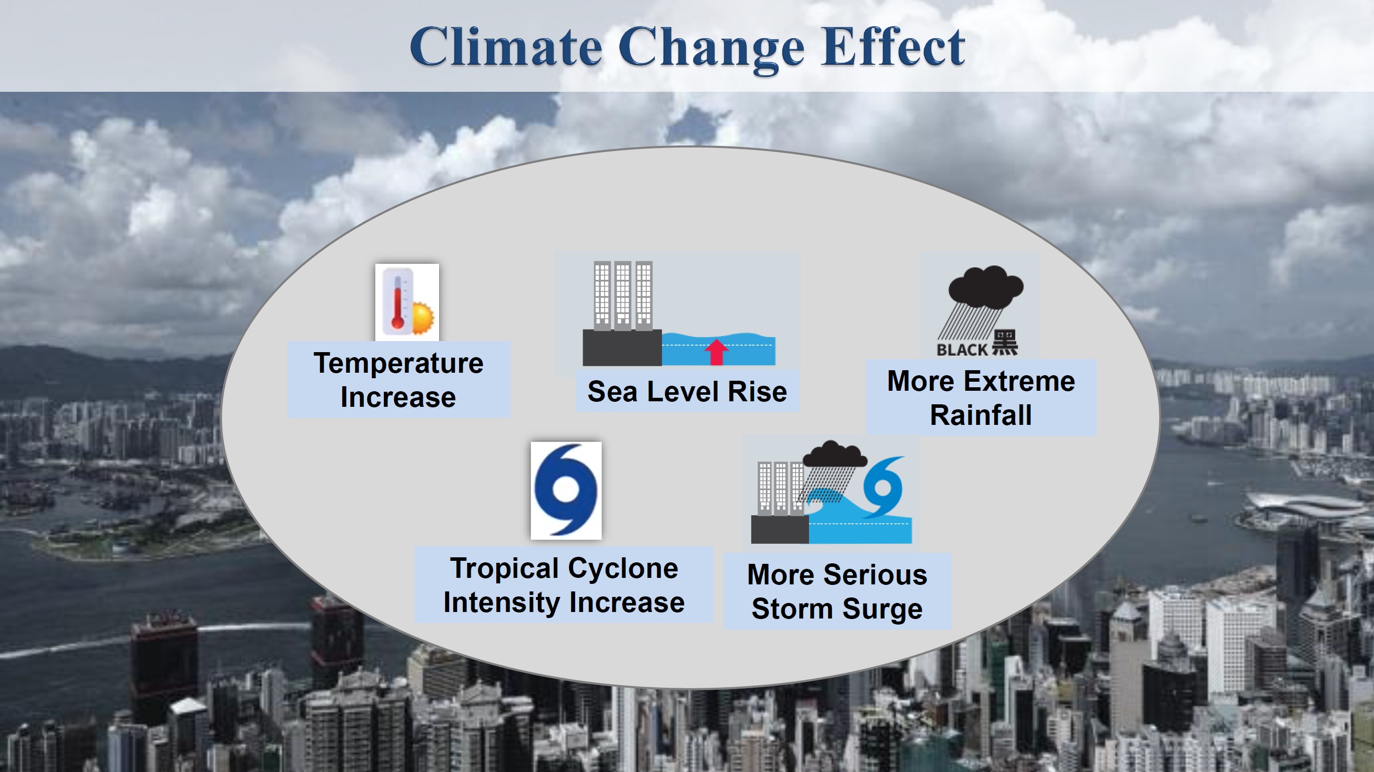 Under the influence of climate change, it is envisaged that the frequency of occurrence of extreme weather events due to temperature increase, sea level rise, more extreme rainfall, tropical cyclone intensity increase and more serious storm surge may increase.