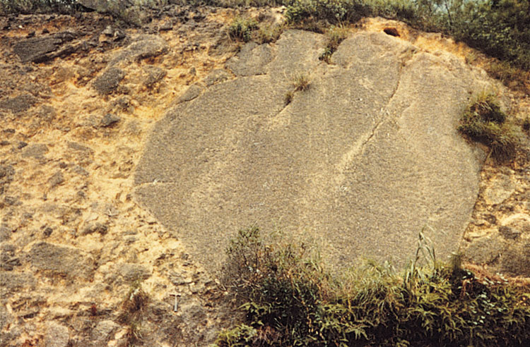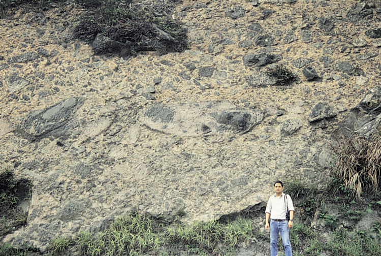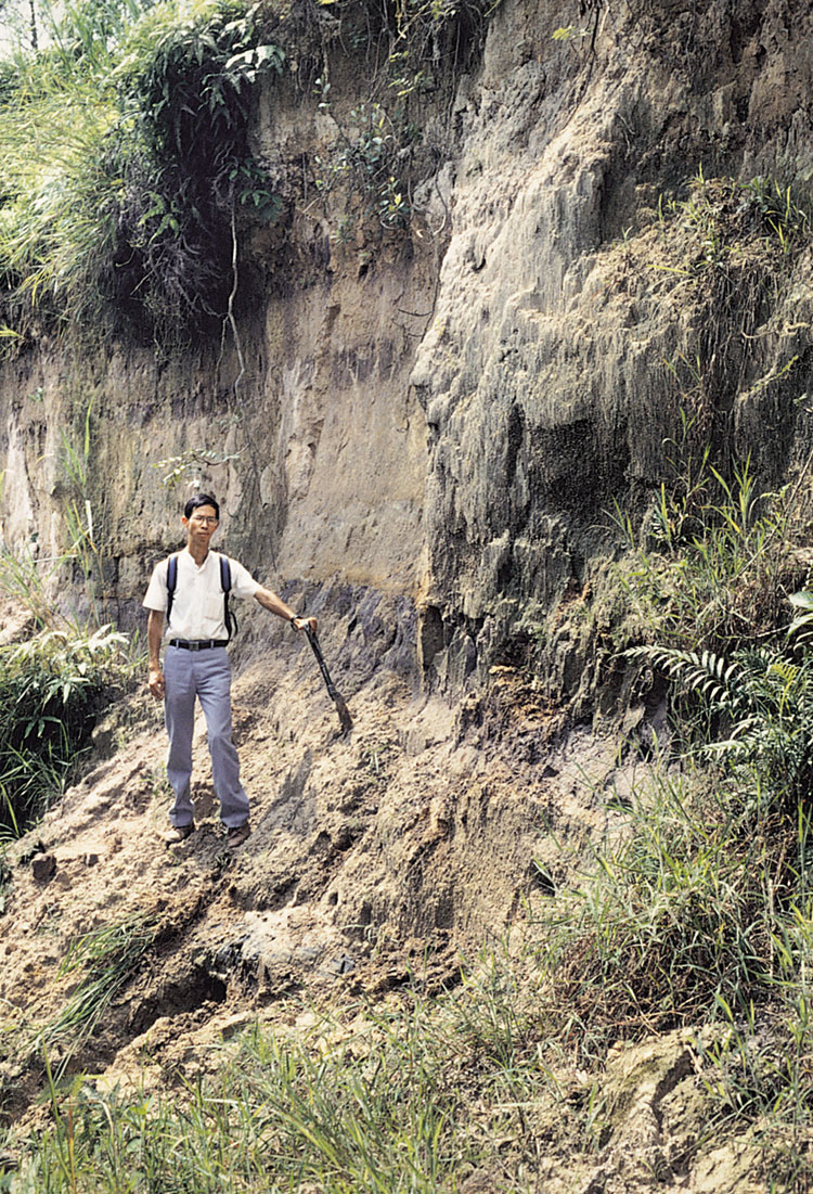 The type section of the Shan Ha Tsuen Member (Figure 11.9) is 600 m southwest of Shan Ha Tsuen village (819200 832100 s-3), southwest of Yuen Long. Here, the member is 3 to 15 m thick. At Shan Ha Tsuen, the member (Plate 11.1) overlies Pleistocene slope wash and is overlain by a debris flow deposit of the Holocene Fanling Formation.