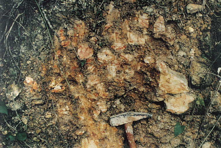 At several localities around northern Kowloon, for example on the slopes below Lion Rock, the colluvium is up to 10 m thick. Temporary exposures here have revealed colluvium of presumed Pleistocene age, underlying more recent colluvium. Commonly, the Pleistocene colluvium occupies ridge spurs, in contrast to the more typical valley-fill morphologies of the recent colluvium. On the southern slopes of Piper's Hill, Whiteside (in Strange & Shaw, 1986) reported that just above weathered rock, the matrix at the base of the colluvium, was mostly a white clay (kaolinitic?) while above that, elongate white flecks, 20 to 40 mm long, interpreted as caused by iron reduction, and containing rootlets, occurred within the more typical brown matrix.