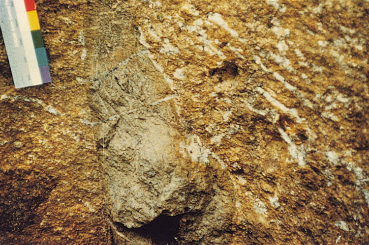 Colluvial deposits of Pleistocene age are included within the Chek Lap Kok Formation. Most occur onshore and where greater than 2 m thick, are depicted on the 1:20 000-scale geological maps and described in accompanying Hong Kong Geological Survey memoirs as debris flow deposits, slope debris or slide deposits. On some of the maps in the 1:20 000-scale series, these deposits were not differentiated from similar deposits of Holocene age whereas on other maps in the series, they also include some talus deposits. The colluvial deposits are generally poorly sorted and commonly comprise a reddish brown or dark yellowish brown to orangish red, slightly mottled slightly clayey gravelly sandy silt matrix containing subangular, slightly to moderately decomposed boulders and cobbles. The grain size can vary between predominantly silt, sand, gravel, cobbles or boulders, depending on the original topography, parent rock type and distance travelled. Based on observations first made in the Mid-Levels of Hong Kong Island by Lai (1982), GCO (1982) and Lai and Taylor (1984), and then elsewhere in Hong Kong (e.g. Lai, 1997, 1998), deposits of this type have been interpreted as colluvial deposits of Late Pleistocene age (Plate 11.2). They have been differentiated from older colluvial deposits of Early to Middle Pleistocene age that comprise red to brick red, brown or white clayey sandy silt with highly to completely decomposed boulders and cobbles. For larger boulders, the extent of development of highly to completely decomposed material is restricted to a distinctive rind, commonly up to 20 mm thick (Lai & Taylor, 1984; Lai, 1997), but which can be up to 100 mm thick (Lai, 1998). Thin, white, kaolin infillings (Plate 11.3) are often observed within boulders in the older colluvial deposits in particular. The Early to Middle Pleistocene colluvium, also contrasts with Late Pleistocene equivalents in terms of its engineering strength, being stiff to very stiff as opposed to firm to stiff.