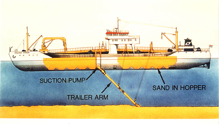 With the restricted availability of onshore fill sources, the expanding scale and capital cost of proposed reclamations, and the new generation of ocean-going trailing suction hopper dredgers (Plate 11.16), offshore sources of sand became increasingly attractive for both economic and environmental reasons. Two major reclamation projects, the construction of Container Terminal 6 and the Tin Shui Wai New Town, were turning points in the history of seabed sand use in Hong Kong. Container Terminal 6 at Kwai Chung was completed using about 8.6 Mm3 of seabed sand dredged from the area to the southwest of Tsing Yi (Wragge-Morley, 1988). Tin Shui Wai, a 400 hectare new town development site, was created using 24 Mm3 of reclamation fill obtained from off Black Point (Dutton, 1987). Since then, all major reclamations in Hong Kong have used suction-dredged offshore sand (Table 11.3). The largest reclamations are the Chek Lap Kok airport platform, north of Lantau Island, the West Kowloon Reclamation (834714 818874 s-53) (Plate 11.17), and the Penny's Bay in Lantau Island. Other important developments include Tung Chung New Town (811823 816755 s-55), Chek Lap Kok Airport and related infrastructure (809645 818288 s-56), Central and Wan Chai (835154 815636 s-57), Hung Hom Bay (836396 817936 s-58), and Tseung Kwan O (844768 819328 s-59).