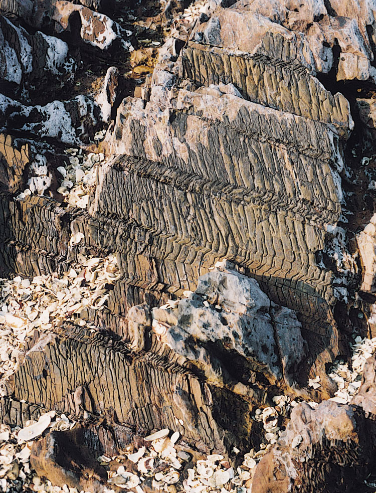 Columnar jointing occurs in many lavas, intrusive rocks and eutaxitic pyroclastic rocks in Hong Kong. The most spectacular examples are seen in the fine ash tuffs of the High Island Formation, exposed widely on the eastern side of Hong Kong (Plate 9.13). Individual columns can be traced vertically for tens of metres. Other examples are described in Chapter 5.
