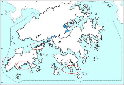 Distribution: The Yim Tin Tsai Formation is exposed mainly in the vicinity of Tolo Harbour, but isolated outcrops occur in the western New Territories, and on Lantau Island.