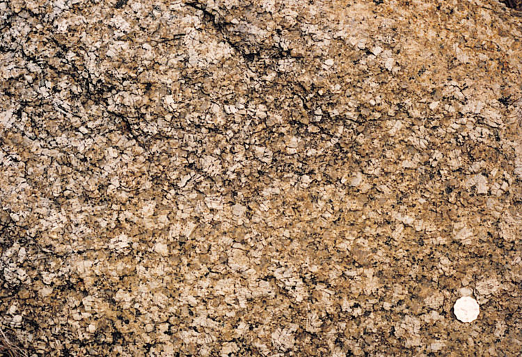 Equigranular granites have similar mineral compositions to the porphyritic lithologies except for a generally higher proportion of microcline. Titanite is absent in the fine-grained lithologies and biotite only occurs as sparse reddish-brown flakes. Fluorite and muscovite are commonly present as secondary minerals, and muscovite may also occur.