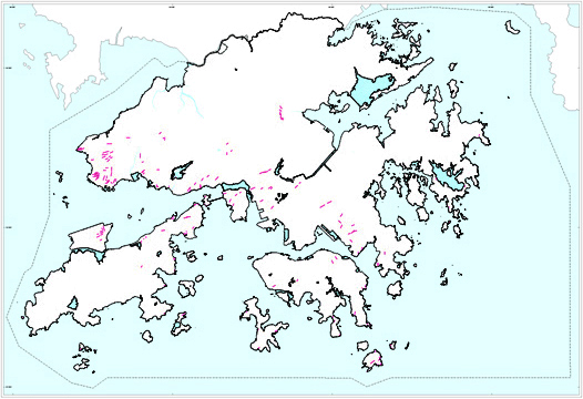 Distribution:The older group of dykes is mainly associated with the Lantau Dyke Swarm in the northern Lantau Island, Ma Wan and Tsing Yi. The younger group is widespread throughout eastern, central and western Hong Kong.