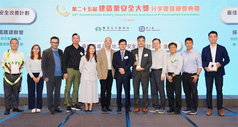 Occupational Safety and Health Council celebrates and showcases the outstanding achievements and contributions made by engineering professionals. Development of the Loop: Main Works Package 1 – Contract 3 Direct Road Link Phase 2 is to construct an elevated public transport interchange (PTI) above the existing Lok Ma Chau Spur Line PTI to support the operation of Hong Kong-Shenzhen Innovation and Technology Park. The award recognizes the team's pioneering efforts in implementing the smart innovative safety systems - TAMAGO (a smart falsework monitoring system) and CANOPUS (a smart safety harness) - at public works projects in Hong Kong. This achievement underscores CEDD's commitment to fostering government-industry-academia collaboration, driving work efficiency and site safety to new heights.