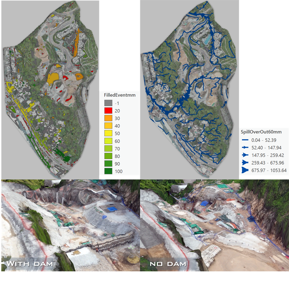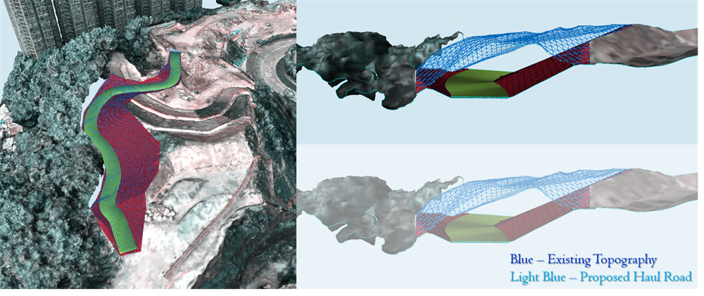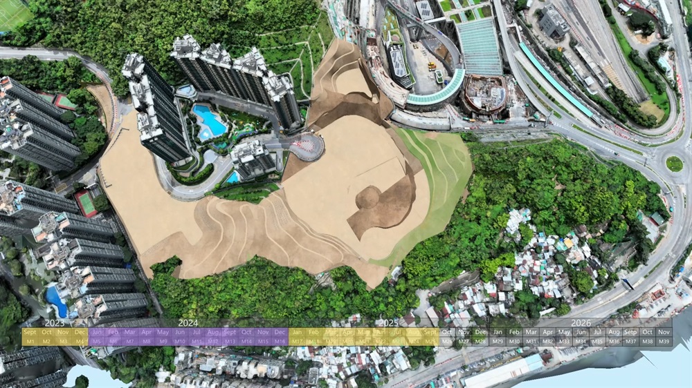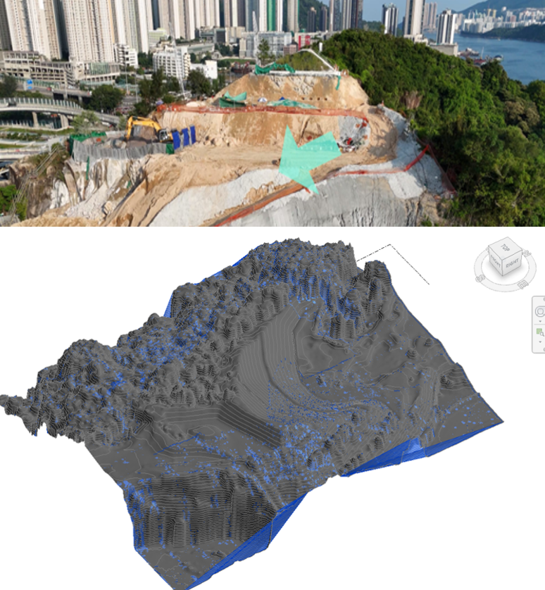 By leveraging advanced BIM applications, the project ensured efficiency, accuracy, and seamless collaboration among stakeholders, which enhanced planning, execution and management processes. For example, the project team leveraged the BIM model to perform clash analysis for soil nails, visualization of temporary works design for construction of haul road and 3D cut-and-fill analysis for effective resource management and planning. With the help of BIM model integrated with Augmented reality (AR), photogrammetry and 4D video modeling could visualize construction sequences which effectively enhanced project management. The project team also utilized BIM to simulate stormwater flow and visualize the acoustic effect arising from the construction works and the changing terrain throughout the construction period. Furthermore, BIM technology was also used to help building up digital models of major cultural heritage at Cha Kwo Ling Village for future use.