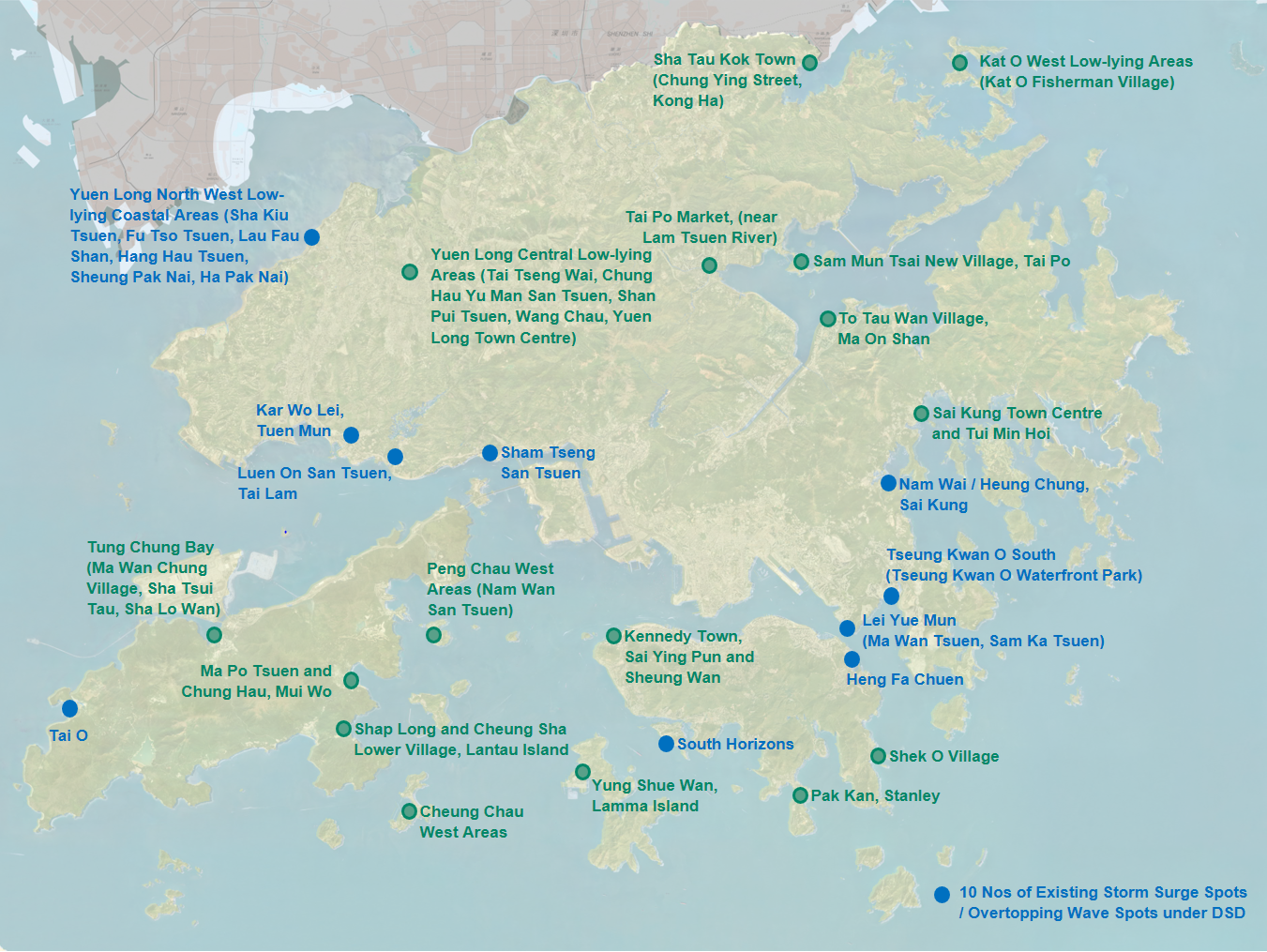The Study of Coastal Hazards under Climate Change and Extreme Weather and Formulation of Improvement Measures - Feasibility Study (Coastal Hazards Study) has comprehensively reviewed the impacts of storm surges and waves on coastal low-lying or windy locations under extreme weather and climate change.