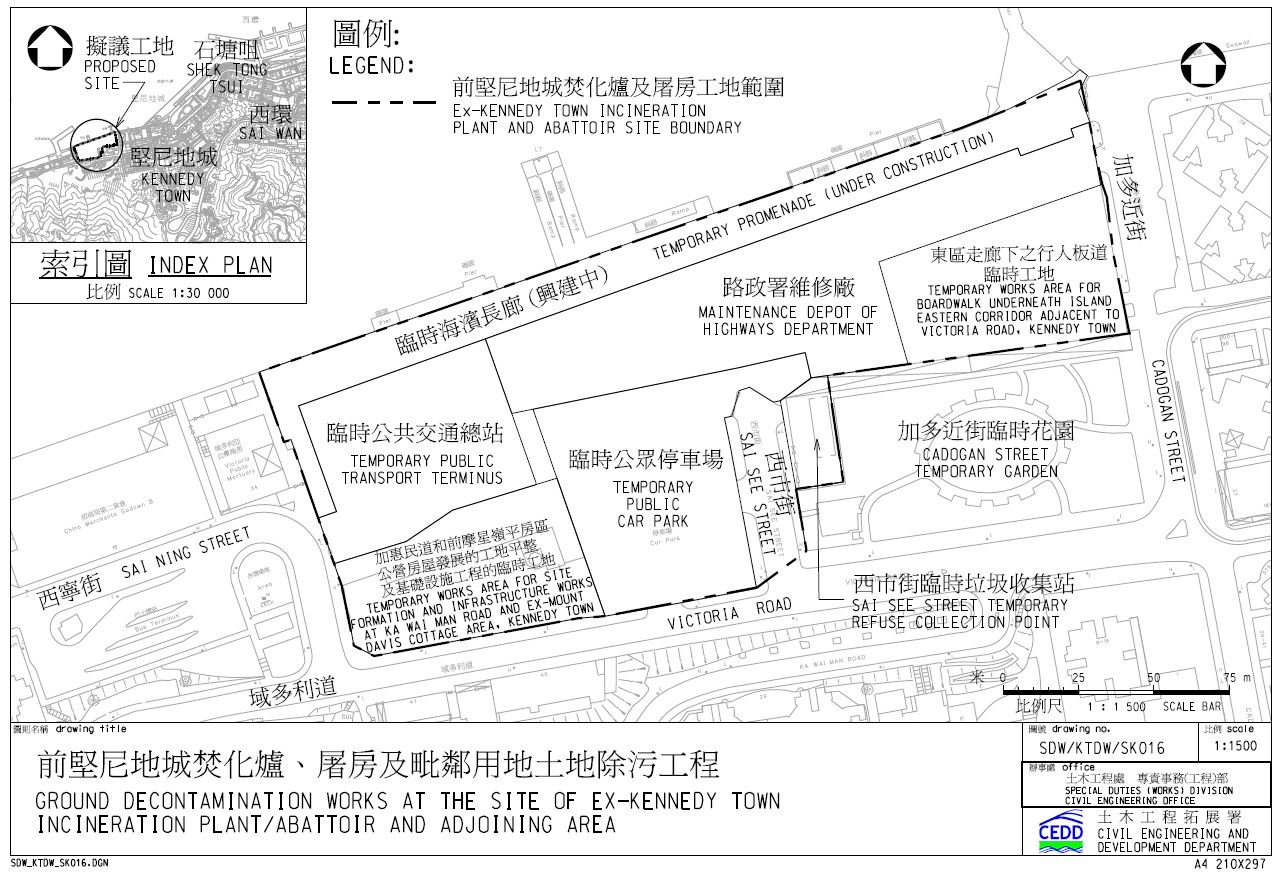 The Project mainly includes the ground decontamination works at the site of ex-Kennedy Town Incineration Plant/Abattoir and the adjoining area.