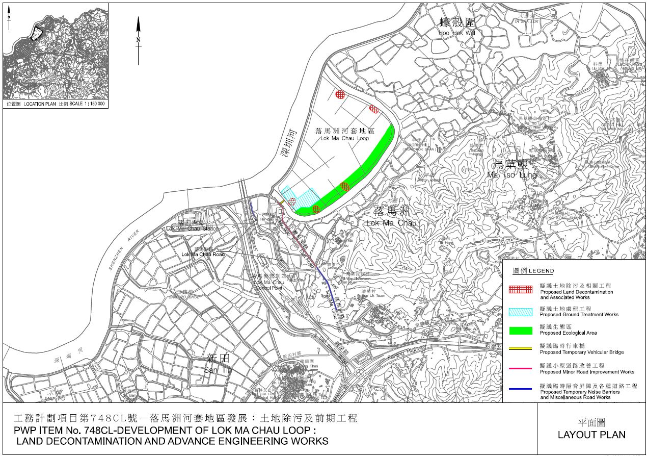 - construction of a temporary access to the Loop (comprising an approximately 60-metre-long temporary vehicular bridge across the old Shenzhen River meander), minor improvement works to Ha Wan Tsuen East Road and other ancillary works;