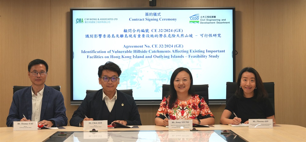 The Civil Engineering and Development Department (CEDD) signed a consultancy agreement of about HK$24.80 million on 4 August 2025 with C M Wong & Associates Limited for identification of vulnerable hillside catchments affecting existing important facilities on Hong Kong Island and outlying islands.