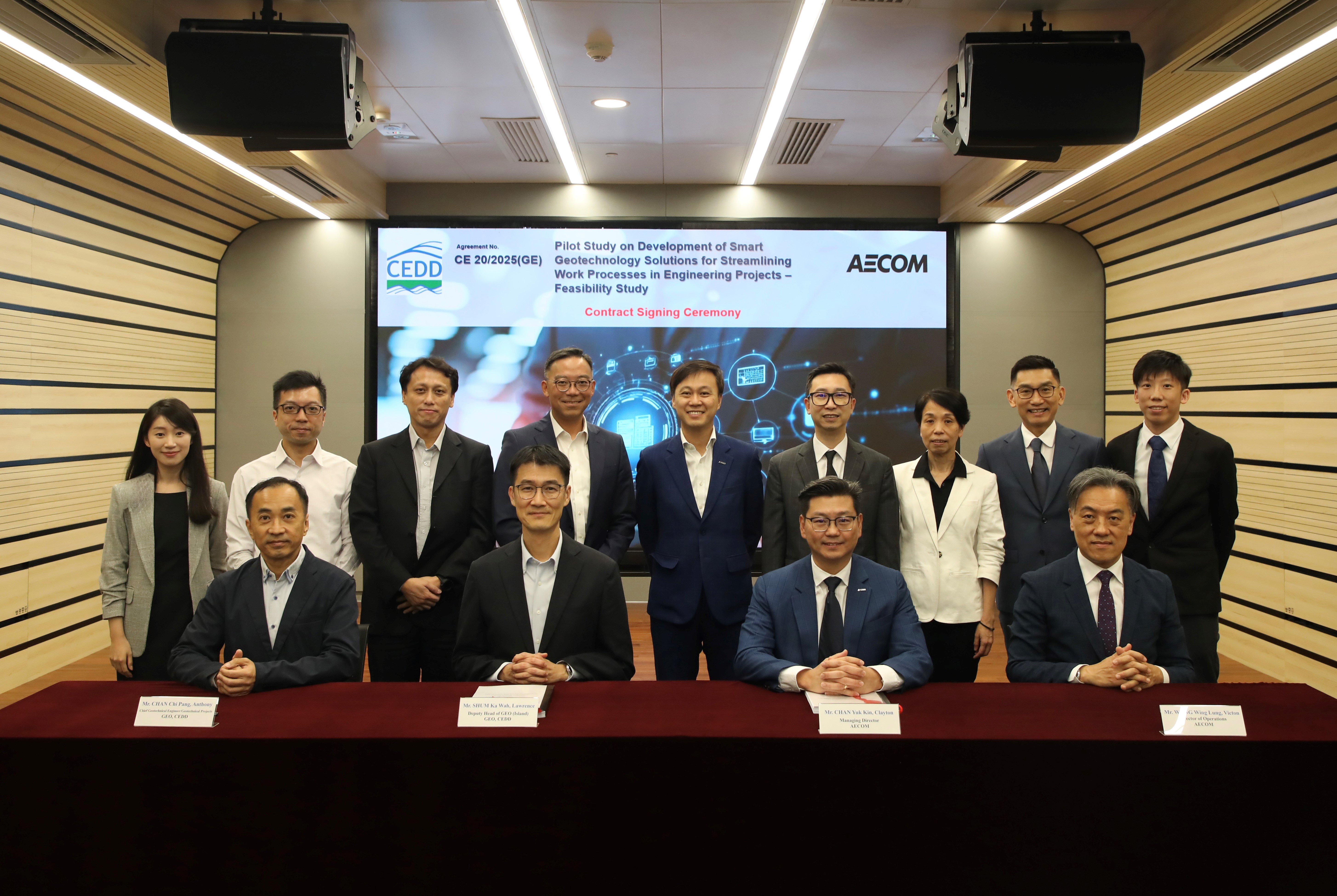 The Civil Engineering and Development Department (CEDD) signed a consultancy agreement of about HK$18.002 million on 26 August 2025 with AECOM Asia Company Limited for pilot study on development of smart geotechnology solutions for streamlining work processes in engineering projects.The consultancy agreement commenced on 26 August 2025 for completion in 2028.