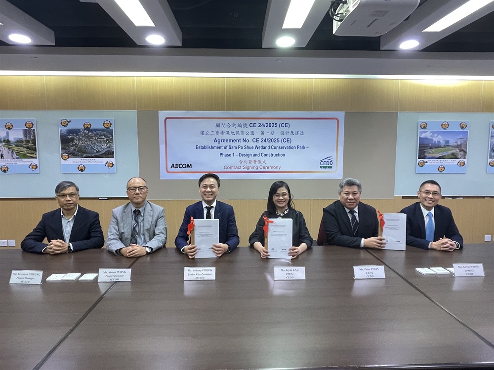 The Civil Engineering and Development Department (CEDD) signed a consultancy agreement of about HK$42.88 million on 3 October 2025 with AECOM Asia Company Limited for the Establishment of Sam Po Shue Wetland Conservation Park – Phase 1 – Design and Construction.