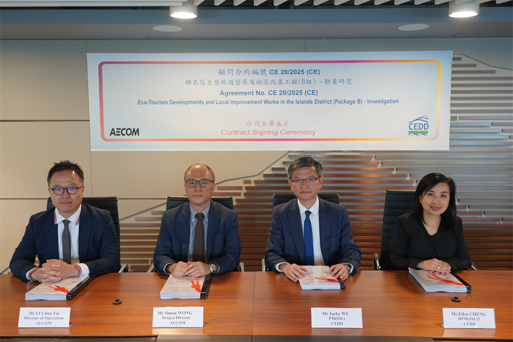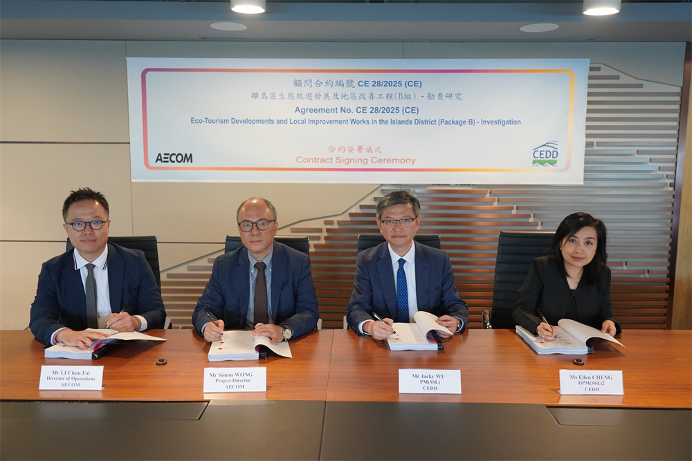 The Civil Engineering and Development Department signed a consultancy agreement of about HK$53 million on 10 November 2025 with AECOM Asia Company Limited for the Eco-Tourism Developments and Local Improvement Works in the Islands District (Package B) – Investigation.