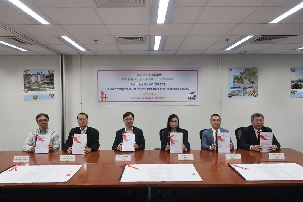 The Civil Engineering and Development Department signed a contract of about HK$ 27.5 million on 15 April 2026 with Tysan Foundation Limited for carrying out ground investigation works for development of San Tin Technopole (Phase 2).