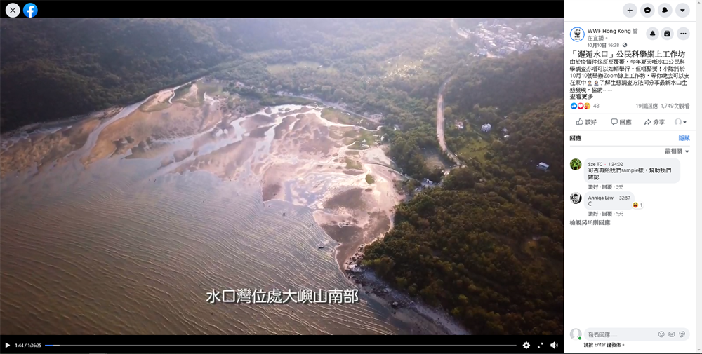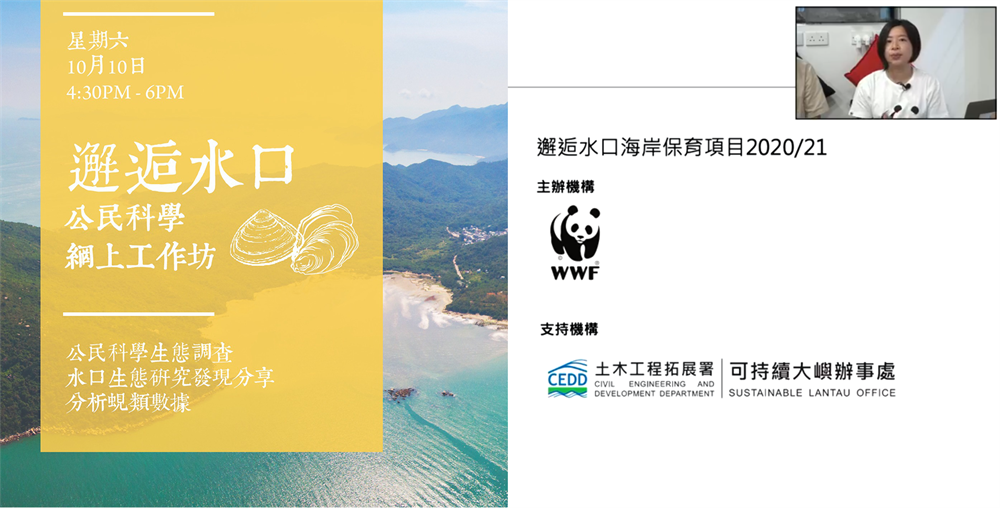 可持续大屿办事处联同世界自然基金会香港分会举办了一场「邂逅水口」公民科学网上工作坊,以推广保育大屿山水口海岸地区的重要性。