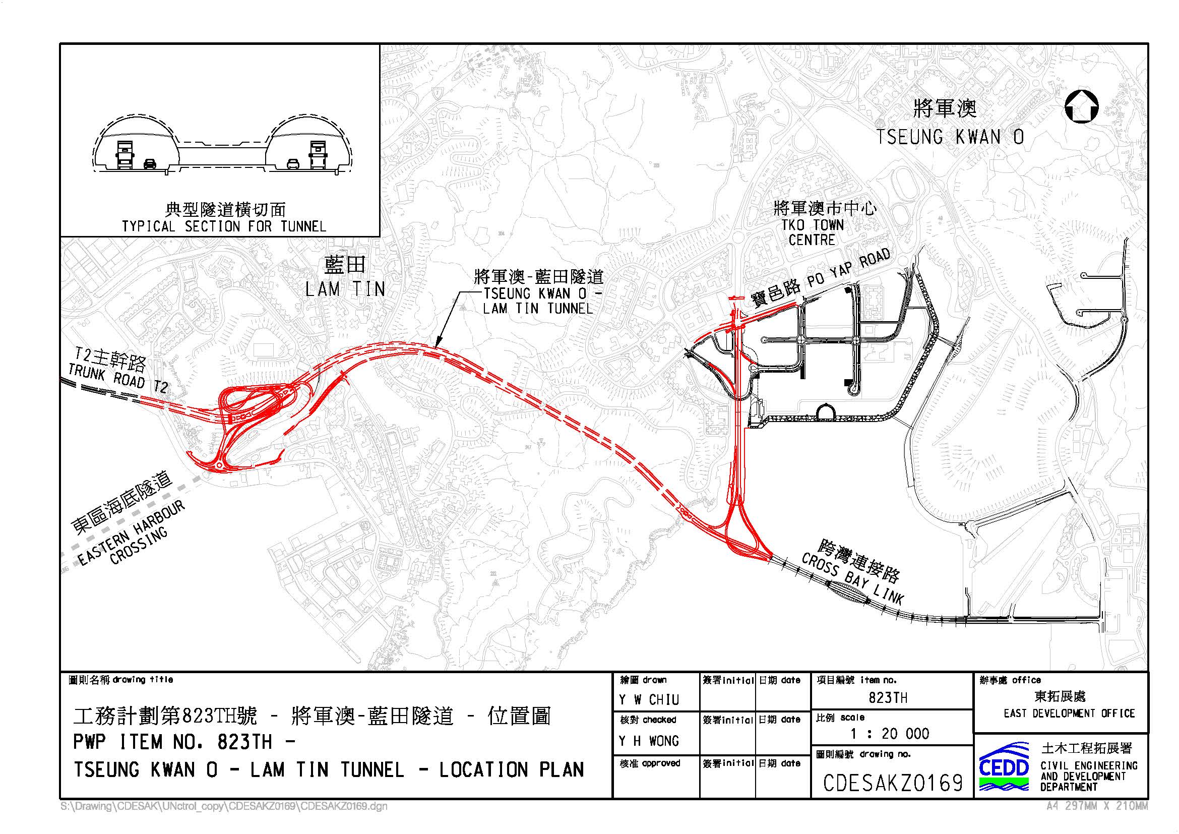 这项工程是建造一条长约3.8公里的双线双程行车路,东端连接将军澳宝顺路,而西端则与启德发展建议的T2主干路连接,其中大约2.2公里为隧道。将军澳–蓝田隧道将满足将军澳持续发展带来的对外交通需要。将军澳–蓝田隧道连同建议的T2主干路和中九龙干线将组成六号干线,此干线是连接西九龙和将军澳的东西行快速公路。