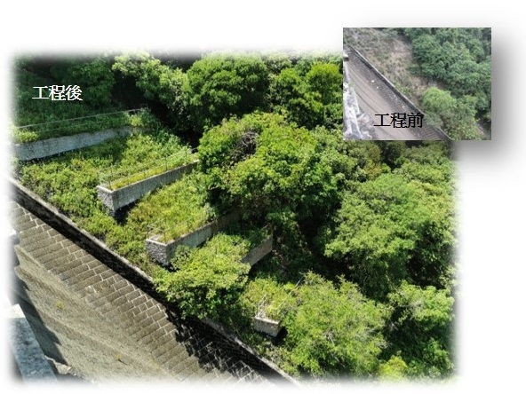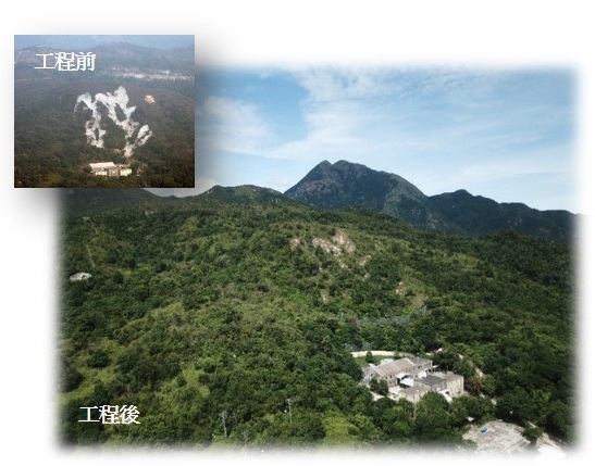 除了以保障公眾安全作為防治山泥傾瀉的首要目標,我們同樣非常重視斜坡工程與周邊環境的融合,通過保持斜坡自然的外觀,使進行鞏固工程後的斜坡外觀能融合其周邊環境,並建立一個能維持生物多樣化的生態環境,從而為野生動物締造棲息地、減少植物受病蟲害感染及植物得以自然繁殖。因此,在《長遠防治山泥傾瀉計劃》下,我們優先採用植被護面以達致斜坡的外觀和生態方面的可持續性,及在天然山坡風險緩減措施周圍栽種合適的植物。一般而言,只有在緊急維修山泥傾瀉殘痕的情況及須確保斜坡穩定性的考慮下,才會採用硬性護面。現時,我們每年平均種植約二十多萬棵植物,而且當中大部份都是本土植物。