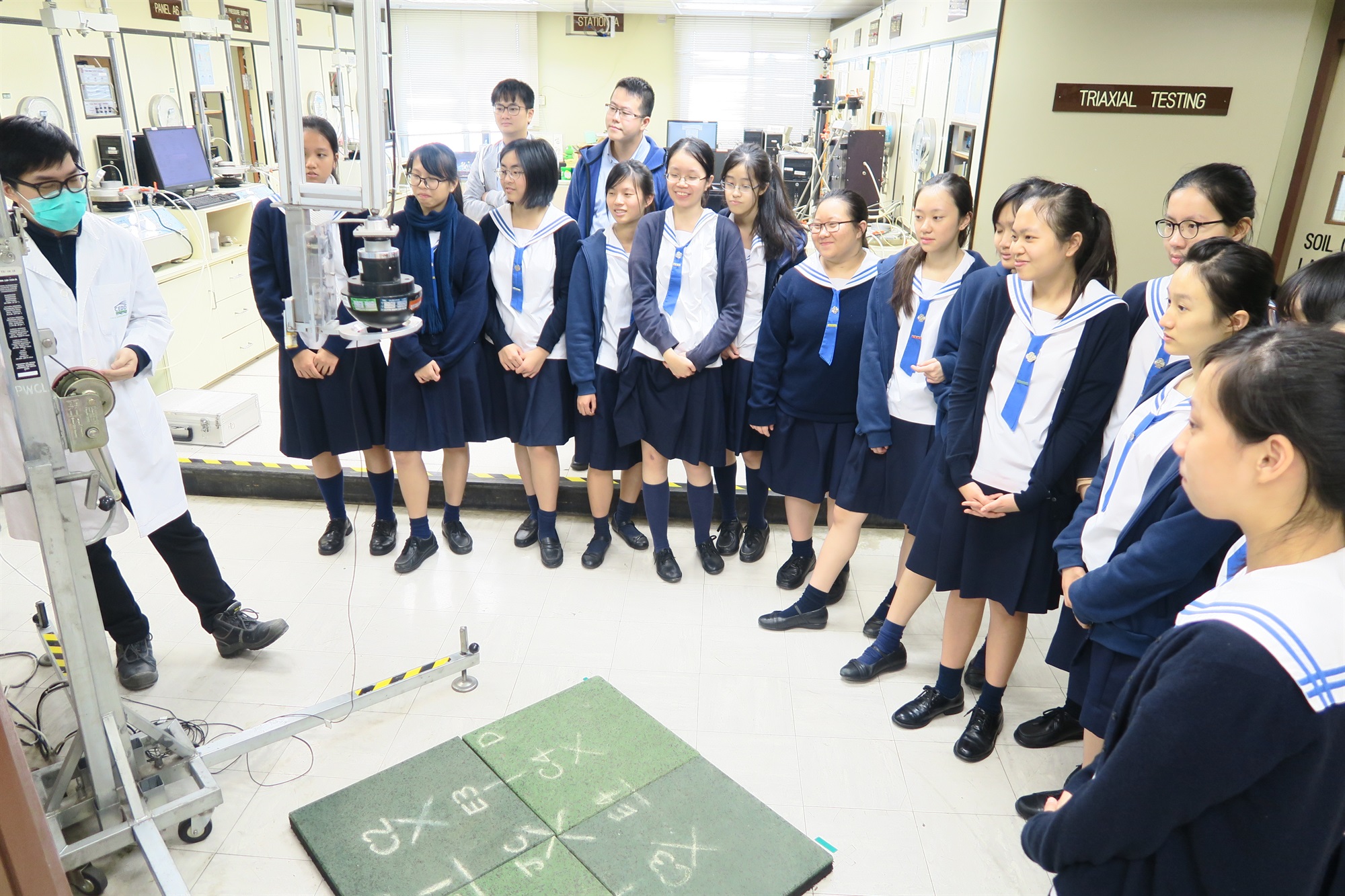 同學參觀工務中央試驗所,了解試驗所的不同工作,包括土壤及岩石測試、建築材料試驗、化學試驗和校正服務。