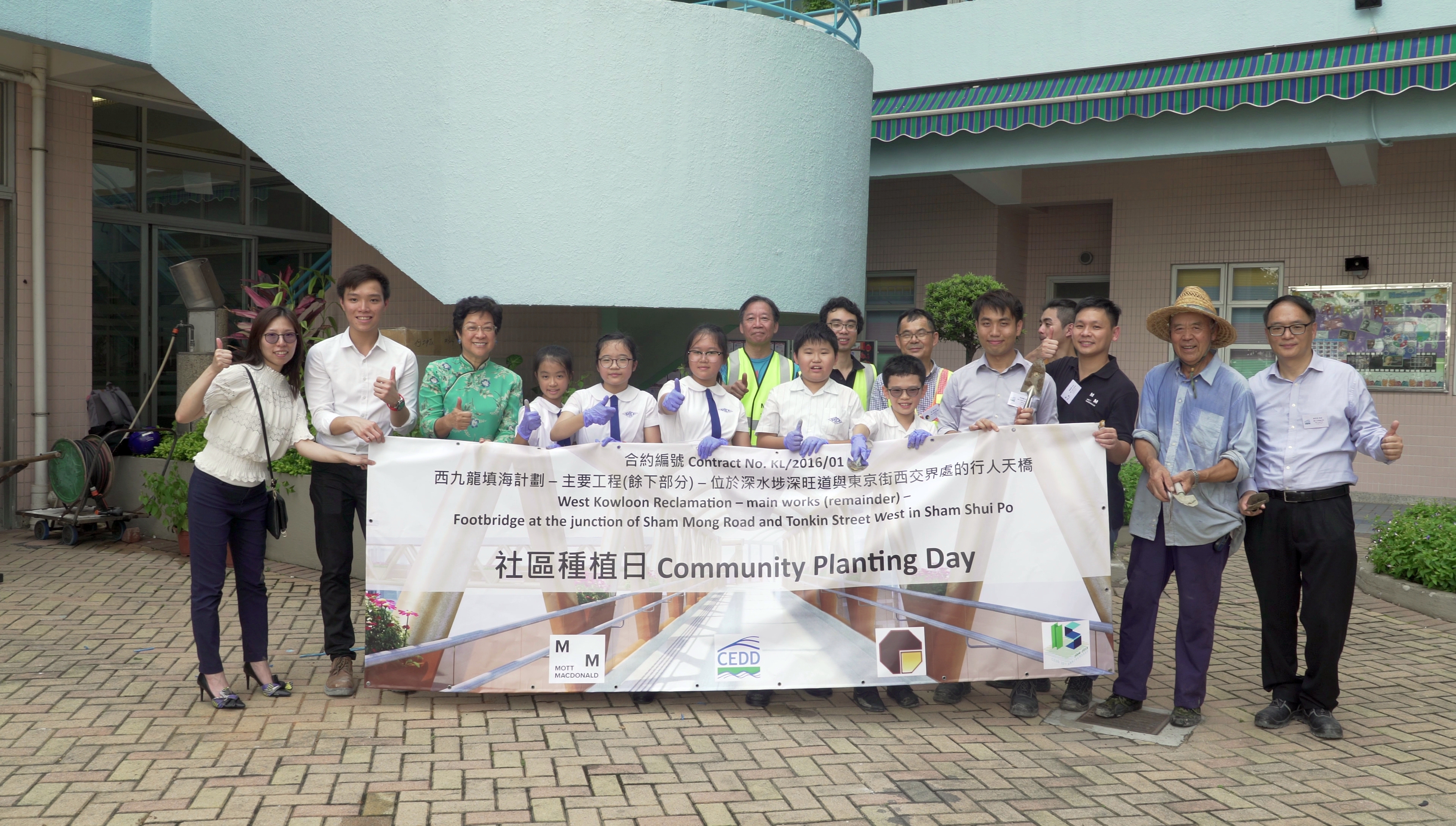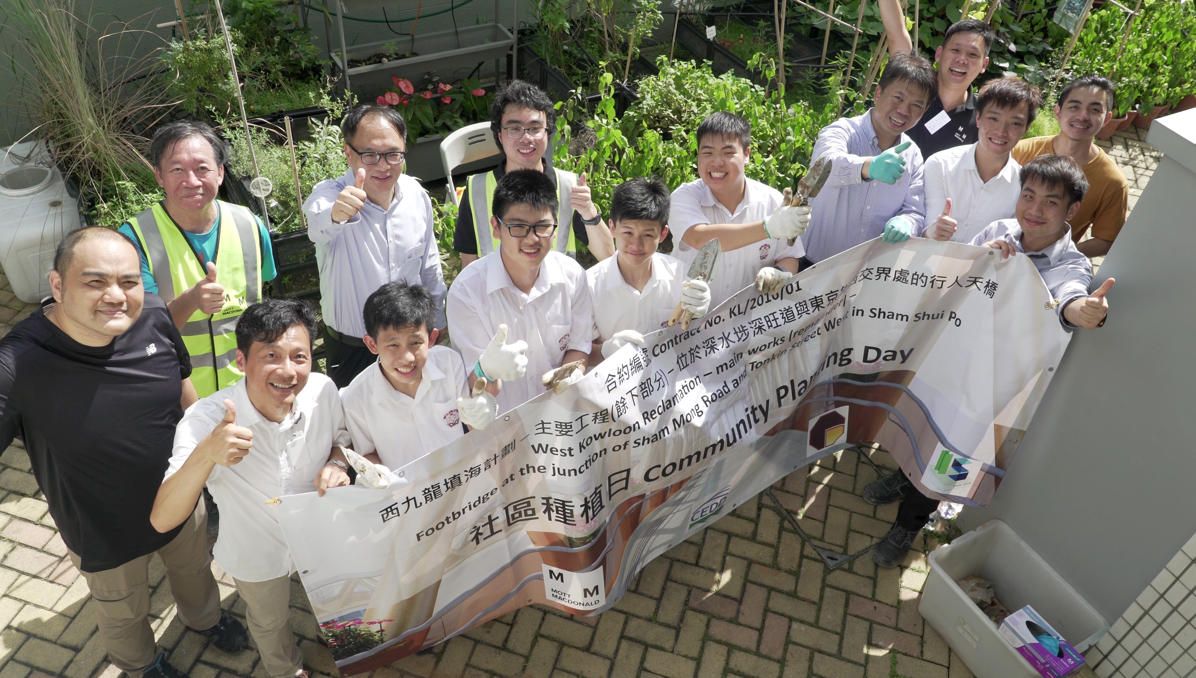 英華書院和聖瑪加利男女英文中小學的同學參與社區種植日。