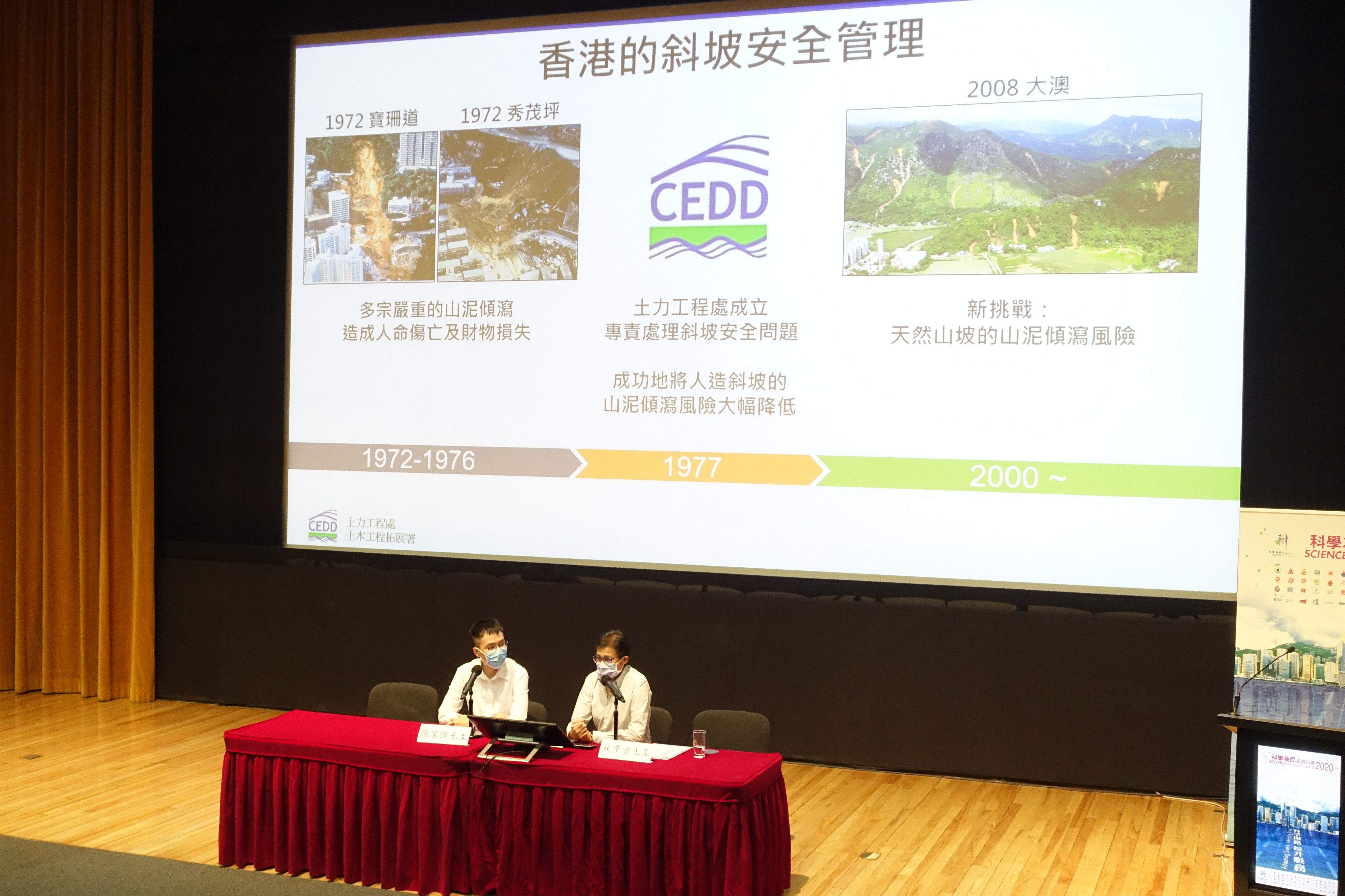 土力工程處在「科學為民」服務巡禮的講座中,介紹各類型的遙感技術,包括攝影測量及激光,及如何利用這些遙感技術幫助我們研究山泥傾瀉危害。