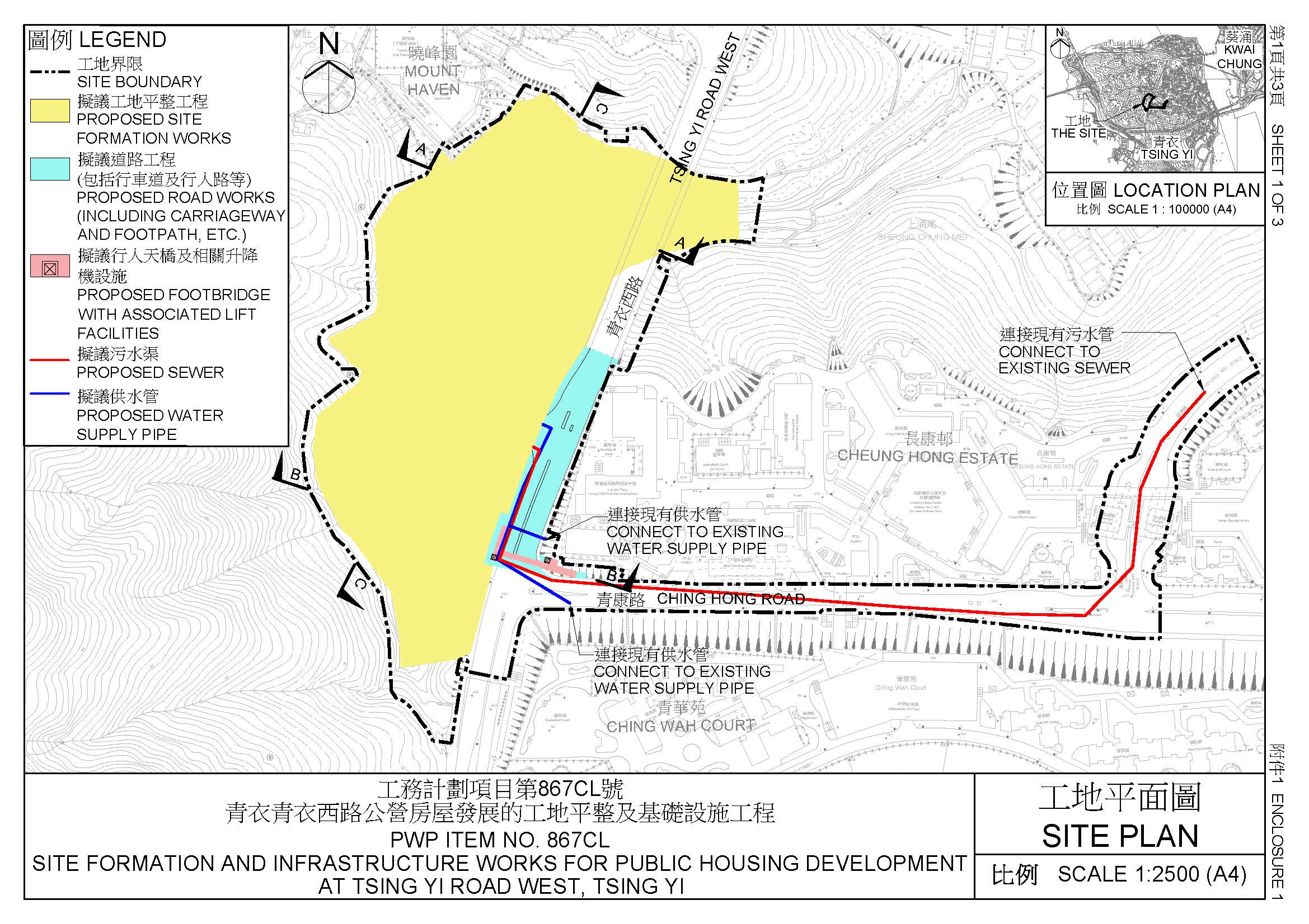 - 建造1條行人天橋,橫跨青衣西路(包括相關的升降機設施);