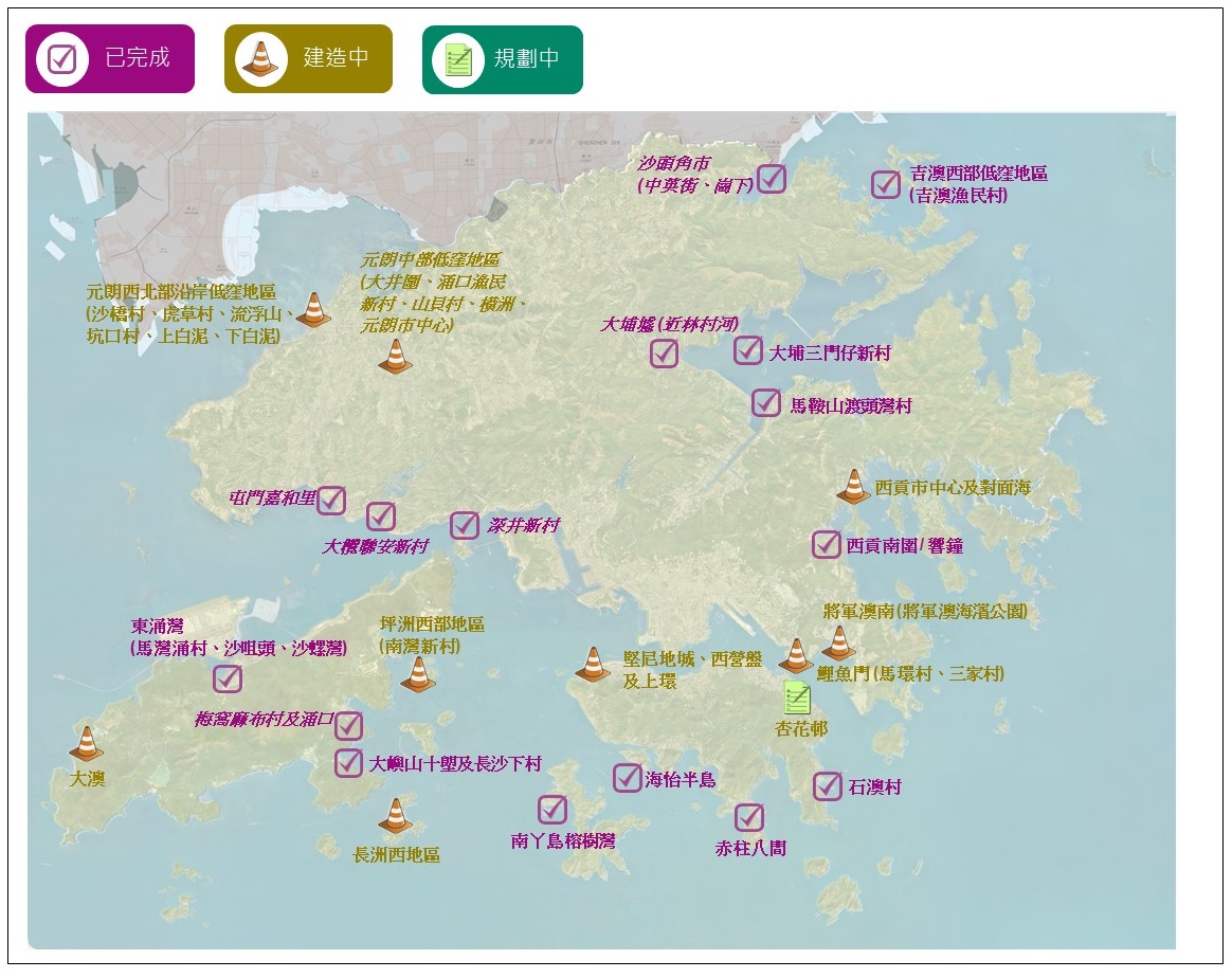 備註:上圖標準文字和斜體文字地區的改善措施分別為土木工程拓展署及渠務署負責推展